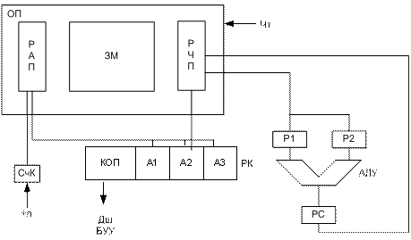 РЧП:=Чт(РАП) Р1:=РЧП Р1-входной регистр АЛУ