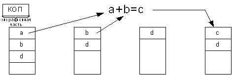 Рис. 3 Имеется только поле кода операции. Стек используется для хранения операндов и записи результата.