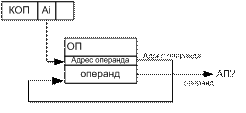 РАП:=РК(Ai) РЧП:=Чт(РАП) – выбор адреса операнда из ЗМ РАП:=РЧП РЧП:=Чт(РАП) – выбор операнда из ЗМ Р1:=РЧП