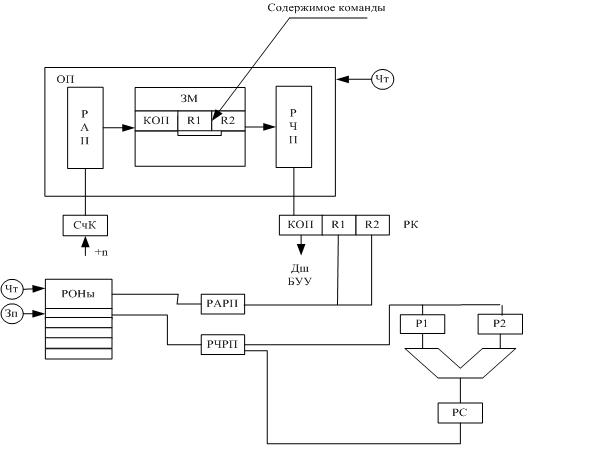 1 этап. РАП:=СчК РЧП:=Чт(РАП) РК:=РЧП СчК:=СчК + n {n-длинна команды}