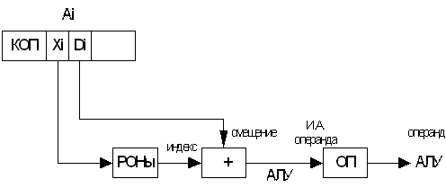 Xi – номер индексного регистра ИА=(Xi) + Di