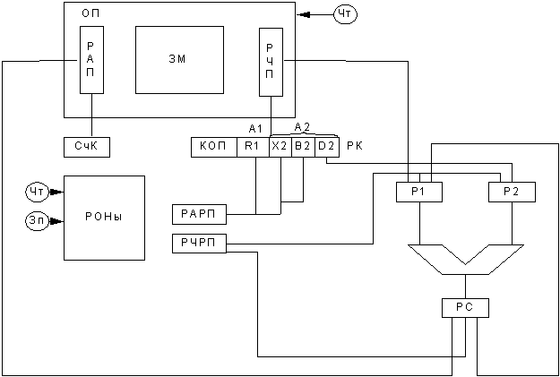 РЧРП:=Чт(РАРП) (выбор первого операнда из РОНов) Р1:=РЧРП (пересылка первого операнда на входной регистр АЛУ)