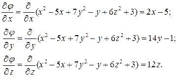 Решение полученной системы определяет точку экстремума Выражение для векторного поля градиента имеет вид: