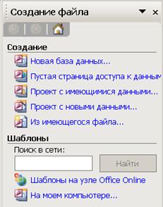 Вызовите программу Access. Для этого дважды щелкните по пиктограмме Microsoft Access. Перед вами откроется окно системы управления базами данных, в котором появиться меню, представленное на рис. 3. Рис. 3. Меню системы управления базами данных ·