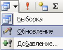 Рис. 36. Выбор команды Обновление · Введите условие замены: в поле Школа заменить все цифры 3 на слово Лицей. Условие отбора представлено на рис. 37.