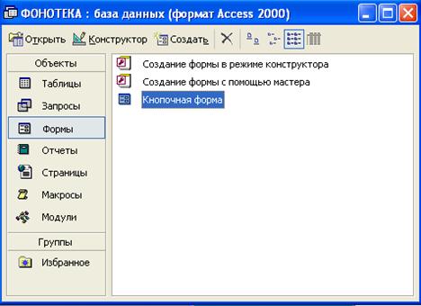 Рис. 55. Выбор Кнопочной формы в режиме Формы Должна получиться форма, представленная на рис. 56.