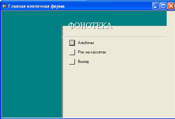 Рис. 56. Главная кнопочная форма создана · Проверьте работу всех кнопок кнопочной формы. После нажатия кнопки Выходвы выйдете из программы Access. Работа 10. Создание и применение базы данных «Видеотека» Цель работы: приобрести навыки работы с базами данных.