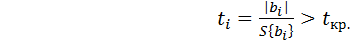 Гипотеза об однородности дисперсий принимается, если расчётные значения критерия не превышают табличных. Критерий Кохрена находят при числе степеней свободы числителя fчисл.=(r-1) и знаменателя fзнам=N (таблица А1). Проверку значимости коэффициентов модели проводят для каждого коэффициента независимо. Для этого используют проверку по t-критерию Стьюдента. При использовании ПФЭ доверительные интервалы для всех коэффициентов регрессии равны. Рассчитывают дисперсию коэффициента регрессии
