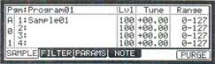 Назначение/переназначение семплов клавишам Для того, чтобы иметь возможность воспроизведения семплов с помощью клавиш, вам необходимо каждой клавише назначить семпл, который она проигрывает. Это можно сделать в режиме «PROGRAM». В данном разделе вы узнаете как назначить клавишам соответствующие семплы, а также как изменить уже сделанные настройки. 1. Нажмите [MODE], а затем клавишу [PAD 7] (PROGRAM). Вы вошли в режим «Программа». При нажатии кнопки [F1] (SAMPLE) открывается закладка «SAMPLE».