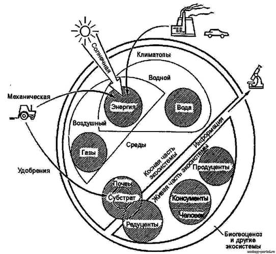 Рис. 1. Экологические компоненты экосистем и биогеоценозов