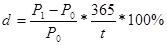 где Р - курс облигации с нулевым купоном, %; d - годовая ставка дохода, %; t - количество дней до погашения.