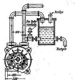(расход воды при мощности насоса 2—3 кВт составляет в среднем 250—300 л/ч). Отработавшая вода вместе с воздухом выбрасывается через нагнетательный трубопровод или в бачок, или непосредственно в канализацию.