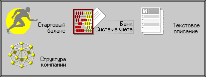 Раздел имеет четыре подраздела: Ø Стартовый баланс. Ø Банк. Система учета. Ø Структура компании. Ø Текстовое описание.