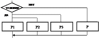 Рис. 9. Вариант структуры выбора. Циклические операторы предназначены для многократного вычисления некоторых действий, предусмотренных условием задачи. Для организации любого цикла необходимо выполнить следующие действия: - задать начальные значения переменной цикла; - после каждого повторения цикла изменять значения его переменной на заданный шаг; - при каждом повторении цикла проверять условие выхода из него и в зависимости от итога проверки либо переходить к началу цикла, либо выходить из него. Различают два типа циклов - цикл с заданным и неизвестным числом повторений. Циклы первого типа называются регулярными, а второго типа - итеративными. Регулярный цикл организуется оператором for. Имеется две формы его записи: for <переменная цикла>: = N to K do <оператор>; for <переменная цикла>: = К downto N do <оператор>; В первой форме записи оператора for при каждом новом повторе цикла значение шага увеличивается на 1 (инкрементный вариант), а во второй форме – уменьшается на 1 (декрементный вариант). В операторе for N (начальное значение) и K (конечное значение) могут быть числами или выражениями. Переменная цикла должна быть целого типа и объявлена в том же блоке, где находится оператор цикла. Нельзя в теле цикла менять значение переменной цикла. Если в цикле требуется выполнить несколько операторов, то их следует превратить в составной, используя операторные скобки. Оператор for выполняется следующим образом. Сначала вычисляются и запоминаются начальное и конечное значения переменной цикла. Затем переменной цикла присваивается начальное значение. Далее, значение переменной сравнивается с ее конечным значением. Если текущее значение переменной оказывается меньшей или равной ее конечному значению в первом варианте записи оператора, либо большей или равной - во втором варианте записи, выполняется тело цикла. После этого значение переменной изменяется на 1, и вся процедура повторяется вновь. Если результат сравнения противоположный, происходит выход из цикла. Регулярные циклы используются для вычисления сумм и произведений конечных рядов. В таких задачах используется сочетание приёмов вычисления сумм и произведений рядов с регулярным циклом.Если тело цикла содержит другие циклы, то такая структура называется структурой вложенных циклов. Переменные каждого цикла должны быть разными и изменяться не одновременно. Итеративные циклы характеризуются последовательным приближением к искомому результату. В качестве критерия выхода из итеративного цикла часто выбирается достижение заданной точности вычислений. Структура "пока" (рис 3,а) реализуется оператором while – do (пока есть – делать). Это цикл с предусловием. Формат оператора: while <выражение> do <тело цикла>;. В теле цикла допускается только один оператор. Если в цикле требуется выполнить несколько действий, то надо применить составной оператор. Оператор while - do выполняется следующим образом. Сначала проверяется истинность выражения. Пока <выражение> = True (истинно), оператор выполняется. При условии <выражение> = False (ложь) происходит выход из цикла. Структура " до " (рис 3,б) реализуется оператором repeat – until (повторять – пока не станет). Это цикл с постусловием. Формат оператора: repeat <тело цикла> until < выражение >; Здесь в теле цикла допускается последовательность операторов, а результат выражения должен быть 
