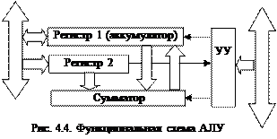 Процессор – функционально законченное программно-управляемое устройство обработки данных, выполненное в виде одной или нескольких больших (БИС) либо сверхбольших (СБИС) интегральных схем. В зависимости от набора команд, которые может выполнить процессор над данными – системы команд, различают процессоры с полным набором команд (типа CISC) и с сокращенным набором команд (типа RISC). Система команд CISC-процессоров в настоящее время насчитывает более тысячи различных команд, что позволяет использовать их в универсальных вычислительных системах. Однако на выполнение даже самой короткой команды требуется не менее четырех тактов работы процессора. RISC-процессоры содержат набор только простых, чаще всего встречающихся в программах команд. На выполнение каждой такой команды тратится 1 машинный такт. Однако сложные операции приходится реализовывать последовательностями простейших команд, которые часто оказываются далеко не эффективными. Поэтому RISC-процессоры используются в специализированных вычислительных системах или устройствах, ориентированных на выполнение единообразных операций. Для ПК в последнее время ориентируются на выпуск процессоров, основная часть которых (ядро) выполняется по RISC-архитектуре, а внешняя – по архитектуре CISC.