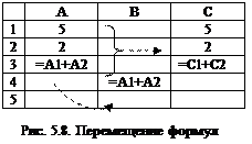 Табличный процессор – специальный комплекс программ, используемый для управления электронной таблицей. Электронная таблица – компьютерный эквивалент обычной таблицы, в ячейках которой записаны данные различных типов. 5.6.1. Интерфейс табличного процессора. Интерфейс табличного процессора отличается от интерфейса текстового процессора наличием строки ввода, состоящей из двух полей – поля имени и строки формул, а также рабочим полем, представляющим собой электронную таблицу. Электронная таблица состоит из строк и столбцов, имеющих свои имена. Именами строк являются их номера, а именами столбцов – буквы латинского алфавита сначала от A до Z, затем от АА до AZ, BA до BZ и т.д. Пересечение строки и столбца образует ячейку таблицы, имеющую свой уникальный адрес. Адрес ячейки определяется именем столбца и номером строки, например Z2. Современные программы предоставляют электронные таблицы, содержащие более 18 млн. ячеек, в каждую из которых можно поместить до 32 тысяч символов. Для быстрого перемещения в нужную ячейку достаточно ввести ее адрес в поле имени строки ввода. Для просмотра или редактирования данных в активной (выделенной или содержащей курсор) ячейке удобно использовать строку формул. Кроме того, строка формул дает возможность видеть содержащуюся в активной ячейке формулу или функцию, а не ее результат. В электронной таблице существует понятие блока (диапазона) ячеек. Адрес блока задается указанием адресов первой и последней его ячеек, разделенных двоеточием. В команде адрес блока, в отношении данных которого она должна быть выполнена, удобно указывать путем его выделения. Электронные таблицы размещаются табличным процессором в самостоятельных окнах (листах). Несколько листов образуют документ, называемый книгой. Специальными командами можно изменять взаимное расположение листов в книге, добавлять и удалять листы, а также давать им уникальные имена. Все листы книги сохраняются в одном файле. 5.6.2. Типы данных электронной таблицы. Текстовые данные носят описательный характер и могут включать в себя алфавитные, числовые и специальные символы. В качестве их первого символа часто используется апостроф. Числовые данные не могут содержать алфавитных и специальных символов, поскольку с ними производятся математические операции. Единственными исключениями являются десятичная запятая и знак числа, стоящий перед ним. Формулы начинаются знаком «=» и представляют собой совокупность операторов (знаков математических операций), чисел, адресов ячеек или блоков ячеек, содержащих операторы, и функций. Результат вычисления помещается в ячейку, в которой находится формула. При этом формула в ячейке становится не видимой. В формулах используются следующие операторы арифметических действий (расположены в порядке возрастания уровня приоритета): сложение (+) и вычитание (-), умножение (*) и деление (/), возведение в степень (^). Нормальный порядок выполнения операций изменяют введением круглых скобок, операции в которых выполняются первыми. Формулы могут также содержать операторы отношений: равно (=), больше (>), меньше (<), не более (<=), не менее (>=). Функции представляют собой программы с уникальными именами. Для каждой функции в скобках, стоящих после ее имени, задаются конкретные значения аргументов в виде адресов ячеек или блоков ячеек, раз