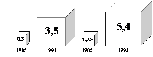 Рис. Ш. Влияние аварии на ЧАЭС на заболеваемость раком щитовидной железы у детей (слева) и у взрослых (справа) в Республике Беларусь (из расчета на 100 000)