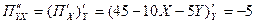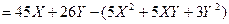 Производится два вида товаров, цены на которые соответственно равныР1=45 Издержки с учетом корреляционной взаимной связи количества первого вида Х и второго вида Y выражаются функцией С=(X;Y)= 5x2 +5XY+3Y2 Решение. Прибыль П(X;Y)
