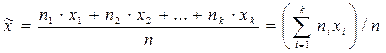 В частном случае, когда выборка содержит по одному значению каждой варианты, выборочная средняя равна: