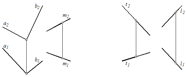 16. Заключить прямые: l в горизонтально проецирующую плоскость, t – во фронтально проецирующую плоскость