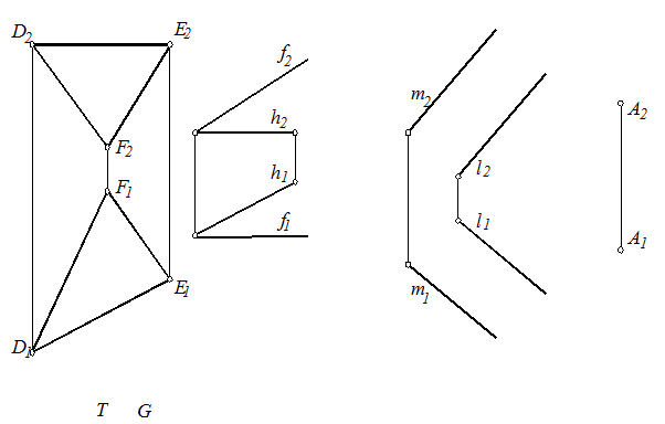 24. Определить, параллельны 25. Провести через точку А ли данные плоскости плоскость параллельную T (D DEF) и G (h Ç f). плоскости Q (m // l).