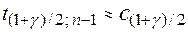 При больших (практически при ) распределение Стьюдента приближается (в смысле слабой сходимости) к стандартному нормальному закону распределения, поэтому в этом случае .