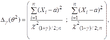 · Доверительный интервал для дисперсии наблюдаемой случайной величины , распределенной по нормальному закону , при известном математическом ожидании имеет вид: