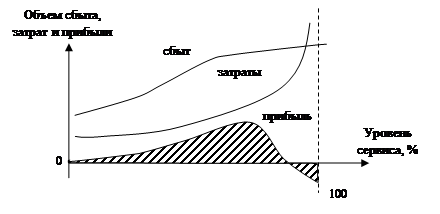 Основные задачи: оформление коммерческих договоров, планирование прогноза сбыта и изучение потребностей заказчиков. Зависимость уровня прибыли от величины уровня сервиса приведена на рис. 1.5.