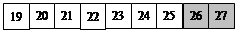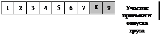 Решение этого задания представим несколькими способами. Для этого необходимо на миллиметровой бумаге или на листе в клетку начертить упрощенную схему склада (рис. 2.3), на которую в три ряда нанесите 27 мест хранения (по числу позиций ассортимента). Для простоты расчетов будем считать, что длина одного места хранения составляет 1м. Тогда длина всей зоны хранения – 9 м. Предположим также, что вес одного грузопакета составляет 100 кг = 0,1 т.