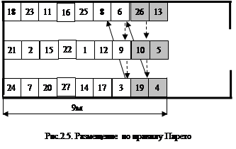 2-й способ. Во избежание больших перемещений внутри склада Парето-анализ можно проводить по рядам. Разместите ассортиментные позиции исходным образом (рис. 2.6).