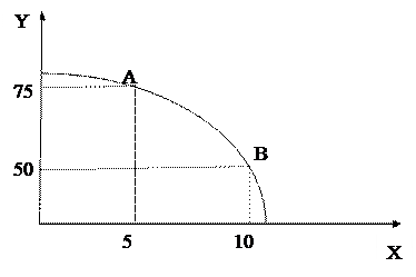 Рис. 1 Альтернативные издержки производства единицы продукции X составят: а) 5 ед. продукции Y; б) 10 ед. продукции Y; в) 1/5 ед. продукции Y; г) 50 ед. продукции Y. 11. Дана графическая модель производственных возможностей экономики (рис. 2).