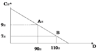 Рис. 2 Альтернативные издержки производства единицы товара С составят: а) 10 ед. товара D; б) 20 ед. товара D; в) 5 ед. товара D; г) 0,1 ед. товара D. 12. Фермер выращивает картофель и пшеницу на двух полях. Дана кривая производственных возможностей фермера (рис. 3).