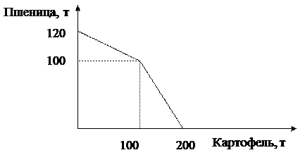 Рис. 3 Альтернативная стоимость производства 1 т картофеля, если его выращивается 150 т, составляет: а) 1 т пшеницы; б) 0,5 т пшеницы; в) 2 т пшеницы; г) 0,1 т пшеницы.
