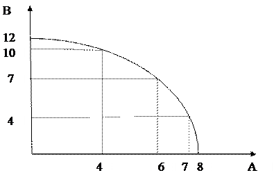Рис. 4 Минимальная альтернативная стоимость производства единицы продукции А равна: а)