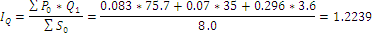 Объем произведенной продукции в натуральном выражении в отчетном периоде по сравнению с базовым составил 122,39% или увеличился на 22,39% Рассчитаем индекс цен произведенной продукции: