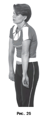Упражнение 9. Руки опущены вниз, голова прямо. Плечи тянем вперед, навстречу друг другу (рис. 26). Выполняется 8-10 раз.