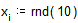 Числа fiпоказывают, сколько раз числа из массива x попадают в каждый из определенных нами интервалов 0–1, 1–2, 2–3, 3–4, 4–5, 5–6, 6–7, 7–8, 8–9, 9–10
