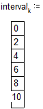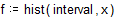Числа fiпоказывают, сколько раз числа из массива x попадают в каждый из определенных нами интервалов 0–2, 2–4, 4–6, 6–8, 8–10 Внимание! В массиве f элементов на 1 меньше, чем в массиве interval. Определим границы для построения гистограммы.