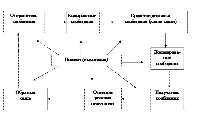 получателю в виде конкретного сообщения (устного, письменного, визуального). Перед посылкой или в процессе посылки отправитель кодирует сообщение с помощью каких-либо технических средств, то есть переводит в форму удобную для доставки имеющимися средствами связи (письменное изложение сообщения, превращение его в механические колебания или электромагнитные волны). Сообщение приходит по каналу связи (почта, звуковой канал, электрические провода) к получателю. Но перед получением сообщение декодируется, то есть переводится в форму, удобную для получателя. Получив сообщение, получатель реагирует на него своими действиями. По системе обратной связи реакция доходит до отправителя. Любая информация на всех этапах перемещения от отправителя к получателю подвергается воздействию различных помех или искажений, которые являются следствием утраты каких-либо её частей и / или появления несанкционированных дополнений (шумов). В связи с этим различают: · искажения, связанные с содержанием сообщения: - языковые вербальные (неточность речи и отдельных терминов); - языковые невербальные (неточность мимики, жестов и поз); - логические (нарушение логики сообщения); - восприятия (разные культуры, разные шкалы оценок и системы понятий); · искажения, связанные с формой сообщения: - сложность формы (перегруженность специальными терминами, причастными и деепричастными оборотами и т.п.); - непривычность, нетрадиционность формы (буквальный, неадаптированный перевод с иностранного языка и др.); - несоответствие формы содержанию; - неоправданное посредничество в передаче и интерпретации сообщений («испорченный телефон»); · искажения, связанные с каналами связи: - низкая оперативность (канал медленно перестраивается с одного сообщения на другое); - малая пропускная способность канала; - несоответствие канала передачи передаваемому сообщению; · искажения, связанные с организацией сообщения: - низкое качество обратной связи или её отсутствие; - недопустимое запаздывание сообщения; - неудачный подбор партнёров по коммуникации; - неудачный выбор времени и обстановки для процесса коммуникации. Могут быть и другие искажения информации, приводящие в организации к дезорганизации и потерям ресурсов.