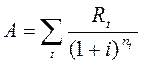 Данная формула предполагает, что проценты начисляются раз в год по сложной процентной ставке i. Современная стоимость потока платежей равна: