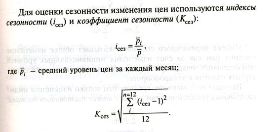 Для оценки сезонности изменения цен используются индексы сезонности и коэффициент сезонности: