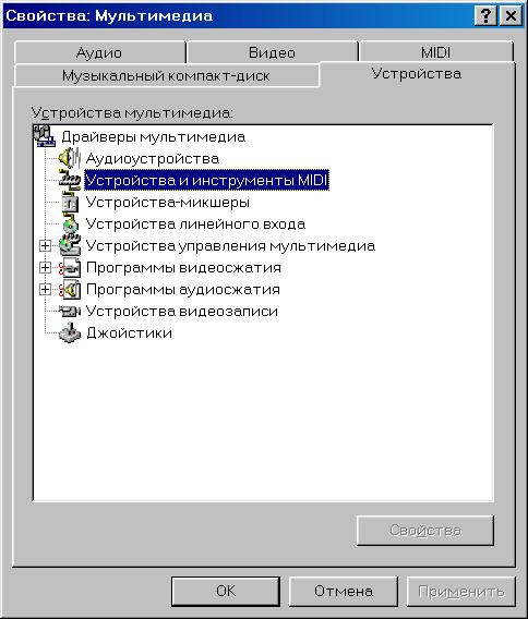 · звуковые схемы мультимедиа - набор файлов WAVE и MIDI общим объемом 6,8 мб. Содержит самые разные наборы звуков - от щелчков или звучащей гитарной струны до фрагментов симфоний Моцарта и Бетховена. Пользователь может присвоить использование любой мелодии любым событиям в компьютере от загрузки ОС или программной ошибки до прихода почты или извещения о истечении заданного интервала времени. · Лазерный проигрыватель - выводит на экран панель управления лазерным проигрывателем, позволяет управлять очередностью проигрывания мелодий, пропуском некоторых, вводом названий произведений, управлять характеристиками звука - громкость, тон, баланс.