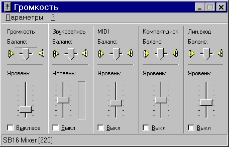 - управляет характеристиками звука - громкость, тон, баланс.