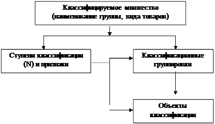 1.1. Изучите указанные разделы двух стандартов на продукцию. Укажите объекты классификации и классификационные признаки, положенные в основу деления множества (товара определенного вида или однородной группы товаров) на подмножества (разновидности, наименования и т.п.). 1.2. Составьте схемы классификации ассортимента и показателей качества исследуемых товаров однородной группы или вида. Укажите на схеме ступени, признаки на этих ступенях и глубину классификации при иерархическом методе. Примерная схема классификации иерархическим методом показана на рисунке 2.1. 1.3. Установите преимущества и недостатки иерархического метода классификации конкретных множеств товаров. Результаты оформите в виде таблицы 2.1.