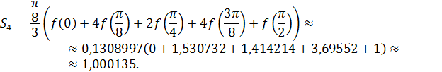 Как видим она согласуется с фактической погрешностью, сосчитанной по известному значению интеграла.