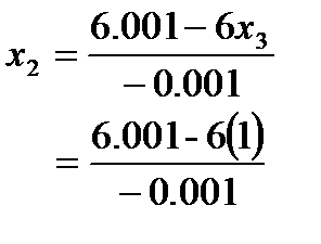 Again dividing Row 1 by 10 and multiplying by 5, that is, multiplying Row 1 by 0.5, and subtract it from Row 3 would eliminate a31, This is the end of the first step of forward elimination. Now for the second step of forward elimination, we would use Row 2 as the pivot equation and eliminate Row 3 – Column 2. Dividing Row 2 by –0.001 and multiplying by 2.5, that is multiplying Row 2 by –2500, and subtracting from Row 3 gives