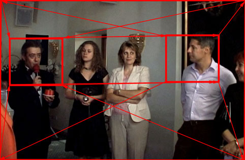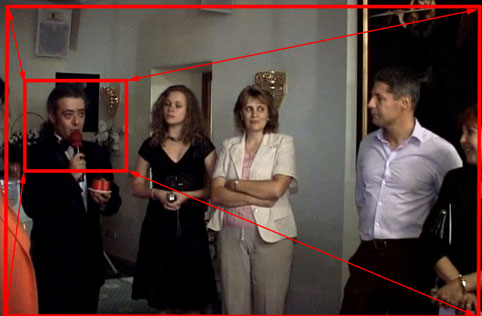 При попытке операторов совершить внутрикадровый монтаж (а, выражаясь бытовым языком, — хоть как-то украсить подчас достаточно рядовое событие), очень часто мы видим такую картину: после панорамирования или игры приближением-удалением, оператор возвращается на кадр, с которого камера начала движение, практически обратным маршрутом. Было приближение — тут же камера начинает свой путь обратно. Был поворот налево — сейчас произойдет поворот направо. Нужно ли сейчас доказывать, что это некомфортно наблюдать зрителю? Не станем, просто поверьте на слово. При постановочной видеосъемке такое ни в какие ворота не лезет, а как быть при репортажной? Надо опять вернуться в ту же точку, ребенок (или собачка, да кто угодно) бегает кругами. Сделали наезд, с целью показать какую-то важную деталь, пора опять на общий план, там очень важное происходит, нельзя зрителя долго держать в неведении... Итак, что будем делать? · нас может спасти последующий монтаж нашей записи (он многое может спасти, готовьтесь изучать видеоредакторы). Один из повторяющихся кусков маршрута (начальный или конечный, по выбору) можно заменить упоминаемой выше перебивкой. То есть кадром, на котором зритель увидит то, что не может увидеть в соседних кадрах, но, безусловно, снятых в том же месте и в то же время (на самом деле обычно чуть раньше или чуть позже). Это, например, может быть просто один из статистов, который до этого промелькнет на общем плане, внимательно смотрящий на происходящее. О перебивках мы подробно расскажем в следующей части. · тот же монтаж может позволить просто безболезненно отрезать кусочек, ничего не вставляя взамен. Это возможно в том случае, если в этот момент участниками сцены не было произнесено никаких важных фраз. Но повезет вам или нет - вопрос статистики. При серьезной съемочной работе вы просто обязаны запастись перебивками, это "палочка-выручалочка" для стыка многих кадров. · найти промежуточную третью точку и придти в нее другим способом. После того как сделали наезд (а вам тут же страсть как понадобилось опять уйти на общий план), примените панорамирование. Например, во время праздника, в толпе вы выхватили наездом маленькую девочку, внимательно изучающую подаренный ей флажок. Не спешите делать отъезд, проведите камерой в сторону, пока девочка полностью не исчезнет за границей кадра, и наведитесь на кого-нибудь другого. Разумеется, следует сделать это как можно чище, без лишних рысканий и ни в коем случае не движениями, которыми в кино обычно показывают поиск снайпером очередной цели. После чего, немного выждав (чтобы зритель успел понять, что вы ему в очередной раз показываете), вы можете спокойно сделать отъезд, и затем (или одновременно) панорамированием вернуться на общий план. Уверяем, такая съемка будет ощутимо комфортнее восприниматься зрителем. То же самое, если вы только что провели панораму. В следующей "перебежке" камеры до следующей цели обязательно воспользуйтесь зумом. Такой прием нисколько не подходит для постановочных съемок, но сейчас мы изучаем те задачи, которые возникают просто при попытке качественно заснять для своего семейного архива несколько важных моментов.