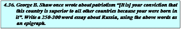 1. The country of every man is that one where he lives best. (Aristophanes) 2. I … do not call the sod under my feet my country. But language, religion, laws, government, blood – identity of these makes men of one country. (Samuel Taylor Coleridge) 3. [Education is] something which makes a people easy to lead, but difficult to drive; easy to govern, but impossible to enslave. (Lord Brougham) 4. [Government] is to have one party govern the other party watch. (Thomas Reed) 5. [A nation is] a group of men who speak one language and read the same newspapers. (Friedrich W. Nietzsche) 6. [A nation is] two classes – the nations in which the government fears the people, and the nations in which the people fear the government. (Amos R.Pinchot) 7. [Patriotism is] your conviction that this country is superior to all other countries because you were born in it. (George Bernard Shaw) 8. [Patriotism is] the passion of fools and the most foolish of passions. (Arthur Schopenhauer) 9. [Patriotism is] a bad and harmful feeling … a stupid doctrine. (Leo Tolstoy) 10. [Patriotism is] our country, right or wrong. When right, to be kept right; when wrong, to be put right. (Carl Schurz) 11. [Patriotism is] one person’s meat is another person’s poison. (Proverb)