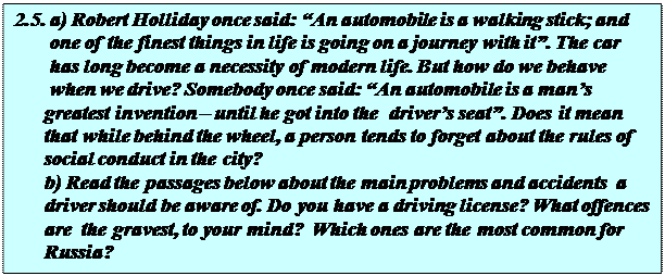 A town is a large number of houses, schools, hospitals, theatres, factories, _____ and other buildings built near each other. All these buildings are divided into _____ of streets. Short narrow streets that join larger ones together called lanes. On one side of the streets the buildings have ____ numbers, on the other – _____ numbers. The main streets are usually paved with stone or asphalt. Along the streets run carts, cars, _____ and trolley-buses. In large towns tramways are laid down wider streets, along which tramcars rattle with great noise. On both sides of the streets there are raised _____ on which people walk. In very large towns, which are generally called ______, countless pedestrians walk along foot-pavements forming two smoothly-flowing ceaseless currents. In England walkers keep to the right, while vehicles on the road keep to the ____. People usually cross the streets at special places, called _____. When the traffic is very heavy, the policeman, who regulates the movement of the cars and buses, has to stop the never-ending stream by raising one hand, thus affording the pedestrians a chance of crossing the street. On the foot-paths, close to the gutter, there are dust-bins, into which refuse is put. The ground floors and the first storeys of the houses, that line the principal streets, usually consist of _____. These shops present most attractive features. The windows are very large and beautifully decorated. It is interesting to look at the shop-windows where the articles on sale are displayed. In the centre and in important parts of a large town, there are squares, gardens and market places. A town is generally situated near or on a river across which ______ are built. In almost all towns there are places of interest, which a stranger would be invited to see – monuments, cathedrals, museums and ________. A town is governed by a council, the head of which is called ______.