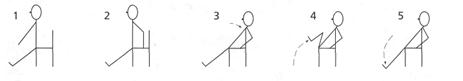 2) ____ the sides of the chair. 3) ____ back against the back of the chair. 4) ____ your knees, and _____ them up to _____ your chest. 5) ____ your legs and lower them to the floor again.